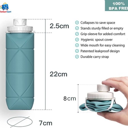 এই Silicone Water Bottle পুনর্ব্যবহারযোগ্য, টেকসই এবং ভাঁজ করা যায় সহজে, তাই ভ্রমণ, জিম বা আউটডোর ব্যবহারে এটি একদম আদর্শ।